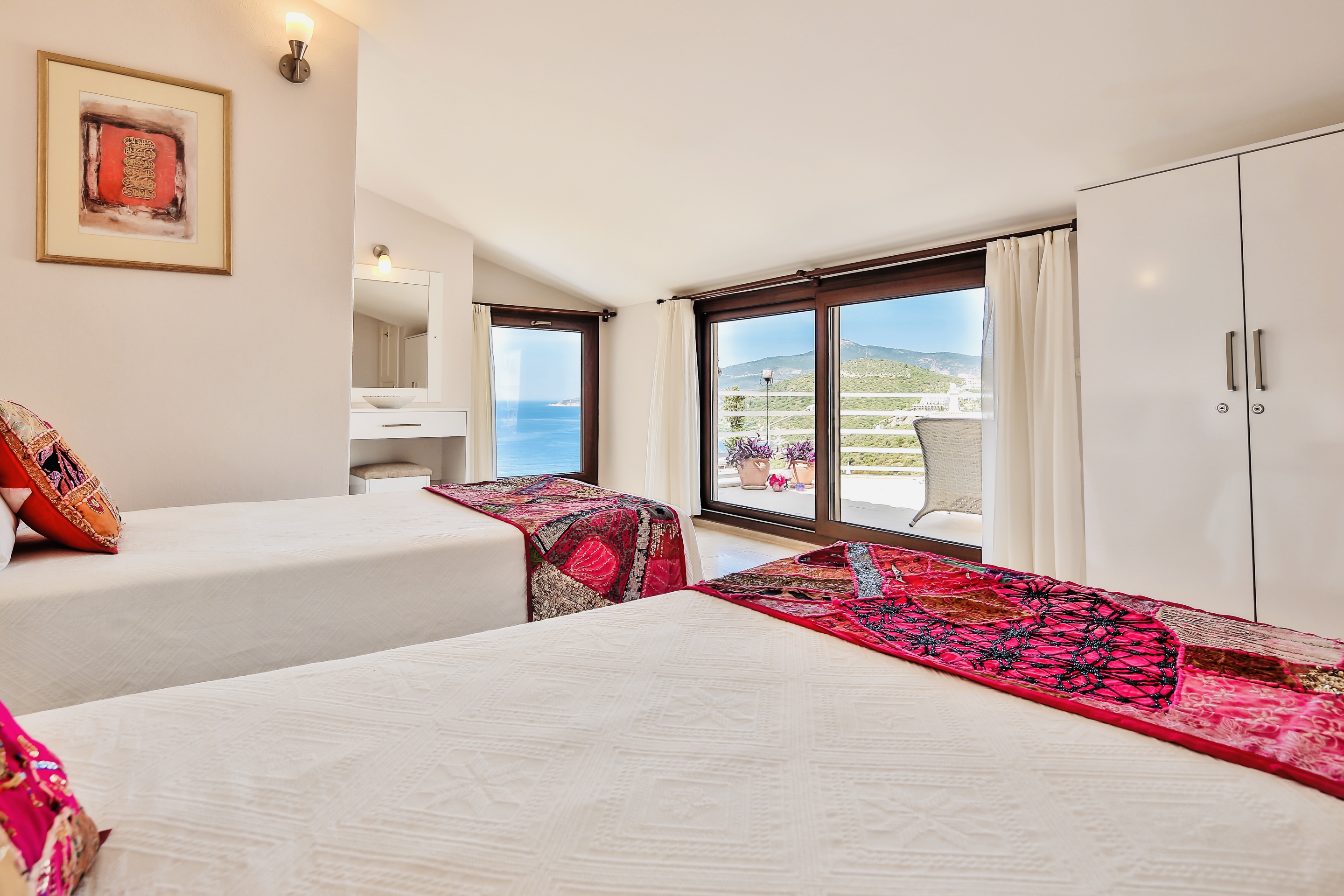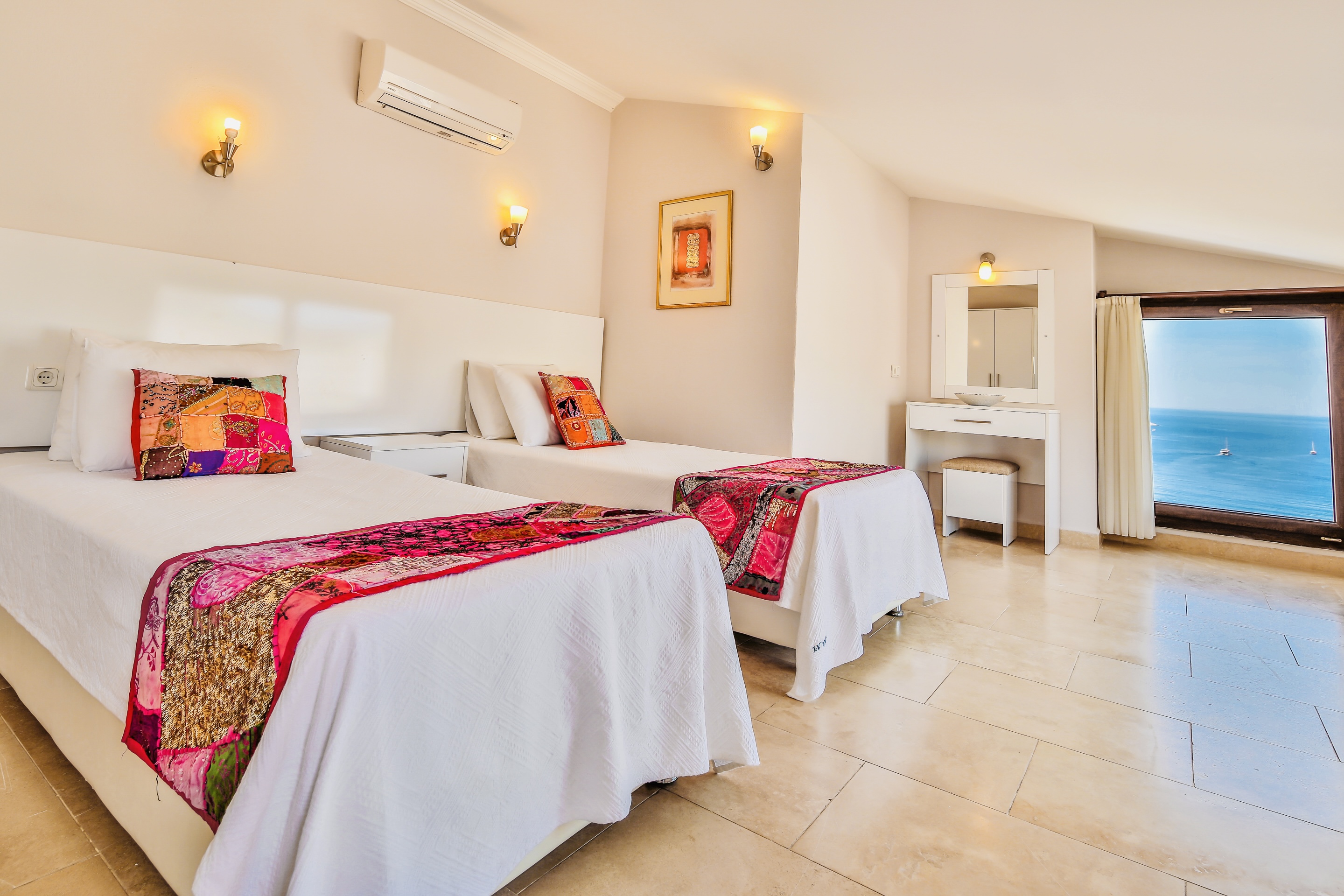 Bedroom 2 is also located on the top floor and also has it’s own private staircase. This is the largest bedroom and can be configured either as a king or a twin. It also has an en-suite shower room. This room has beautiful views to the sea as well as the town and mountains beyond.